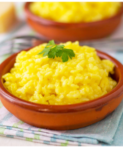 One of the most famous dishes in Italian cuisine is Risotto alla Milanese. This creamy risotto is flavored with saffron, giving it a soft, aromatic flavor and a rich yellow color. It is usually served as a first course. Risotto alla Milanese uses Arborio or Carnaroli rice, two different types, to make it. These types of rice are ideal for risotto because they absorb liquid while retaining a creamy texture. Saffron threads are used to give flavor to the dish after soaking, as this step releases their color and scent. Butter is used at both the beginning and the end for the soffritto. This gives the risotto its creaminess. A neatly chopped onion or shallot is sautéed to add depth, then warm beef or meat broth is poured while the rice is being prepared, and it is simmered so it can absorb the flavor.